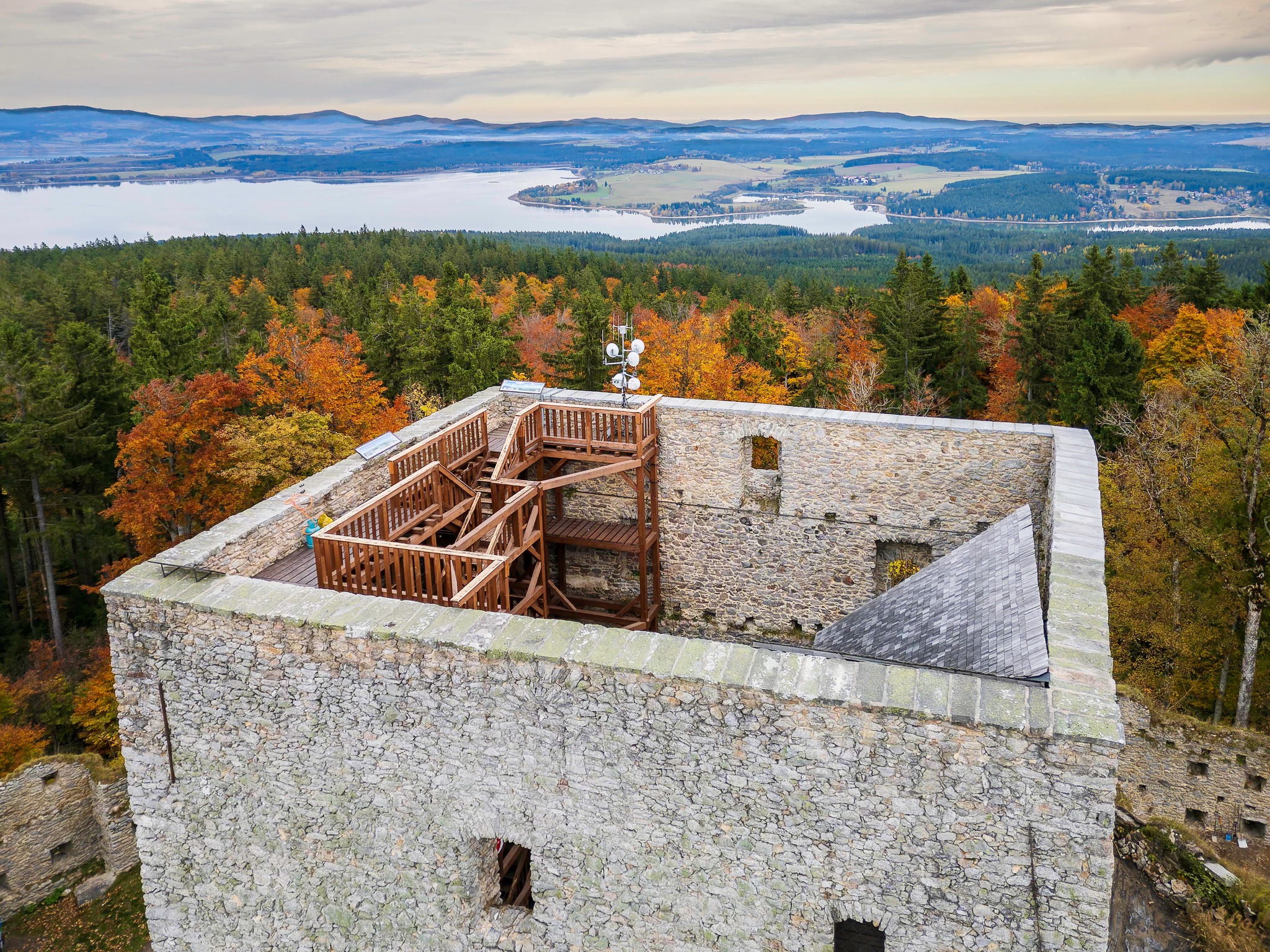 It offers panoramic views of Lake Lipno, Sumava and the alpine peaks. At the same time, you'll get to know first-hand both the unique ambiance of an old customs post fort and its rich history. You can find this perfect blend of view, stories and experiences in the unspoiled natural surroundings of the protected landscape area of Sumava Forest.