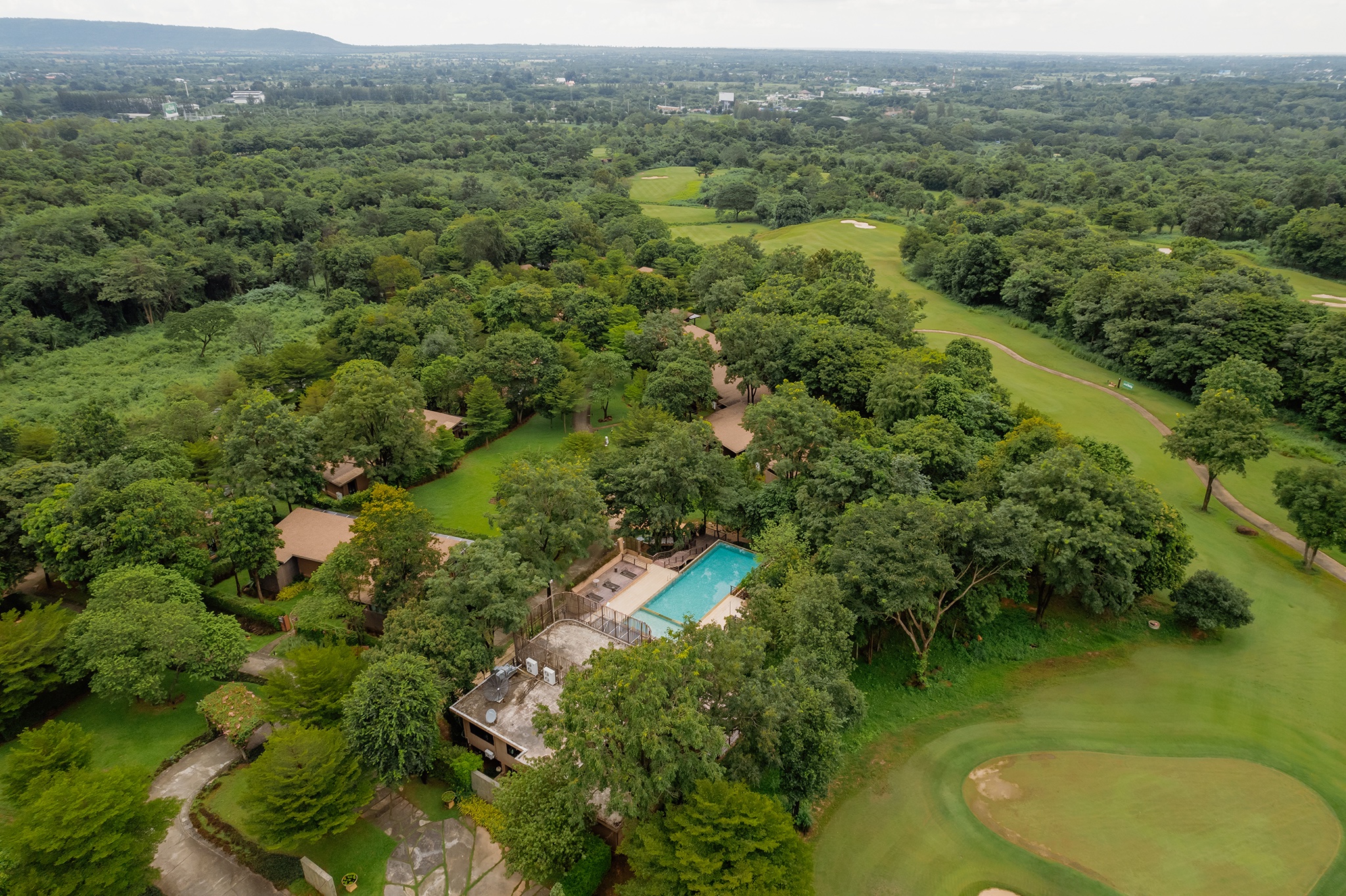 Mountain Creek Golf Resort & Residences is a premier integrated golf resort located in Nakhon Ratchasima, Thailand. Surrounded by scenic mountain landscapes near Lam Takhong Dam and not far from Khao Yai National Park, the resort offers a perfect blend of championship golf, luxury accommodation, and complete leisure facilities. The resort features a 27-hole championship golf course designed by legendary world champion Seve Ballesteros. The course is divided into three distinctive 9-hole layouts — Highland, Creek, and Valley — each thoughtfully designed to harmonize with the natural terrain while providing both beauty and challenge for golfers of all skill levels. The course is well-known for its strategic design that tests both power and precision, including signature holes such as a Par-3 featuring an "S"-shaped bunker inspired by Ballesteros' iconic style. Beyond golf, Mountain Creek offers a range of premium facilities including a spacious clubhouse, pro shop, restaurant serving Thai and international cuisine, spa and wellness services, as well as hotel rooms and private villas for a relaxing stay. Located approximately 200–220 kilometers from Bangkok, Mountain Creek Golf Resort & Residences is an ideal destination for weekend getaways, golf retreats, corporate events, and leisure travelers seeking tranquility in a natural setting.