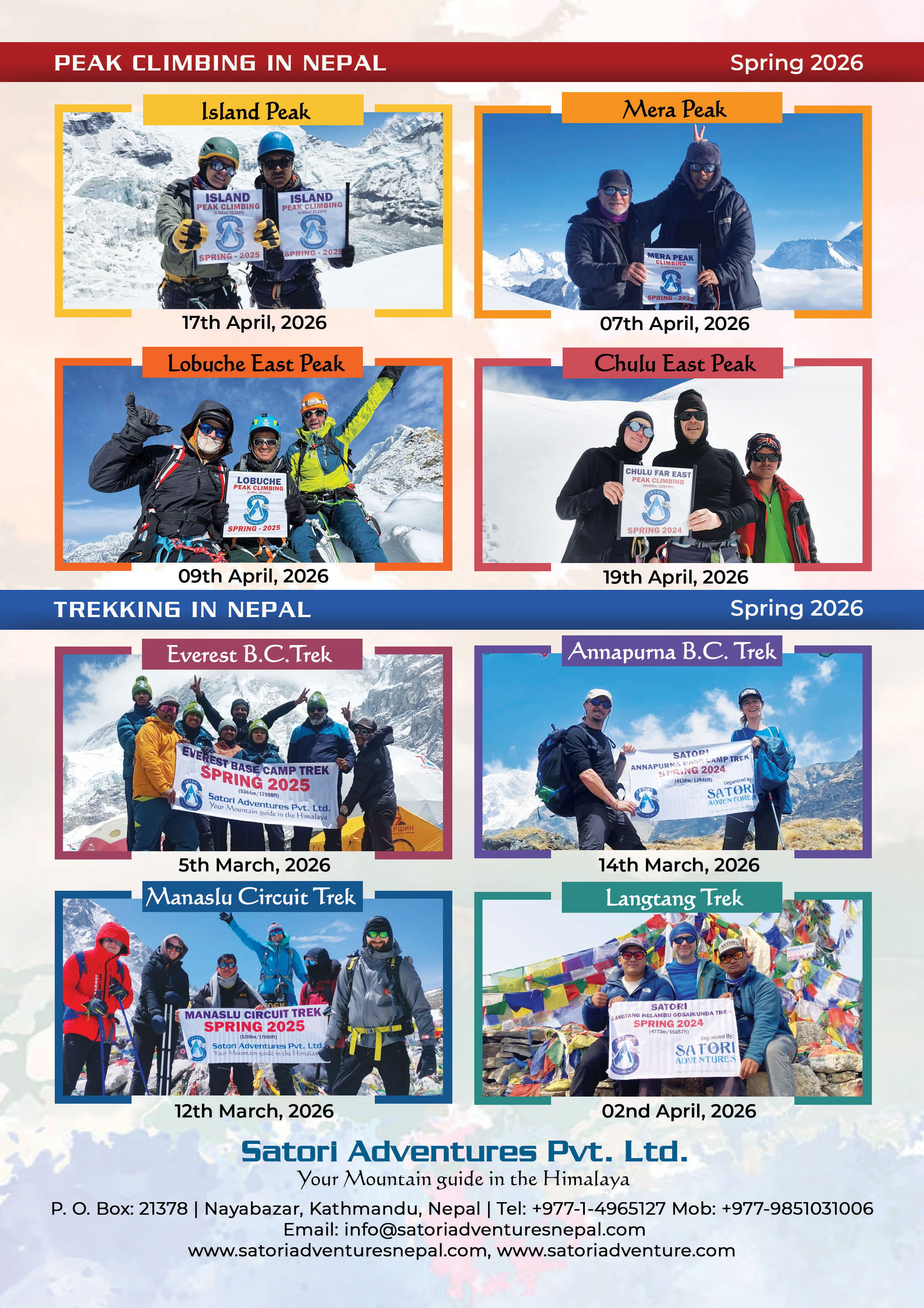 We are an adventure expedition company that offers expertly arranged treks, summit climbs, hiking trips, and culture tours throughout the Himalayan region. Our expert mountain leaders provide excellent logistical support with unwavering dedication towards ensuring your personal safety as well as providing you genuine encounters of our native cultures; delivering memorable adventures designed specifically for veteran mountaineers or those who have never explored before.