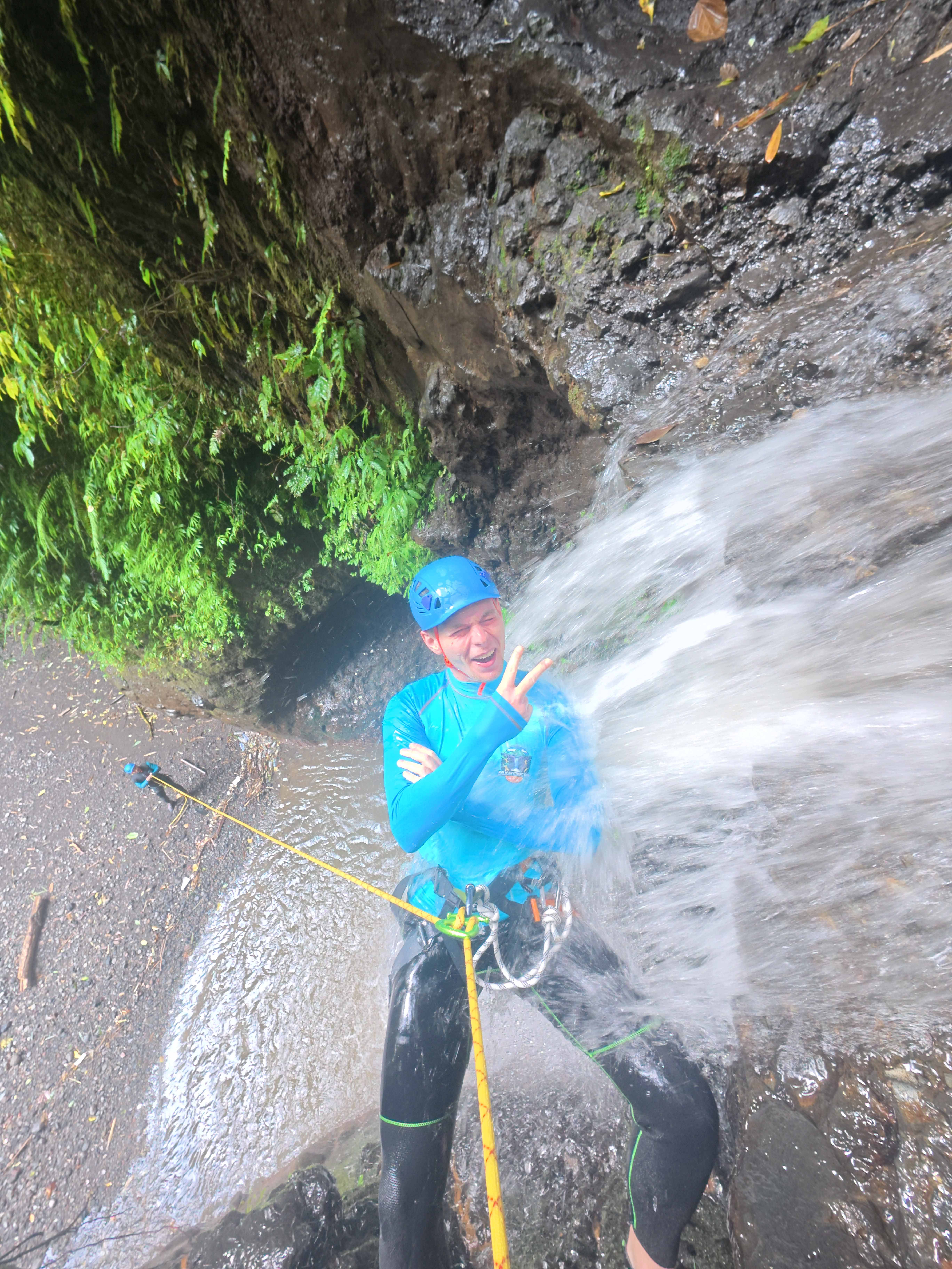 Canyoning is an activity that involves exploring a canyon and waterfalls. Participants descend through the canyon using techniques such as rappelling (descending), jumping into deep natural pools, sliding, trekking through the area, using a zip line (flying fox), and climbing down. Along the way, they can enjoy the beautiful natural surroundings and landscapes. Our canyoning Basecamp is located in the northern part of Bali, known for its wild, untouched landscapes and hidden gems. Our canyoning location features iconic spots such as Gitgit Twin Waterfall and Aling-Aling Waterfall. It only takes a few minutes to reach the closest canyoning starting point. We are proud to offer our participants a unique and unforgettable canyoning experience in Bali. While preserving the natural beauty of our environment, we create a fun and safe playground that leaves long-lasting memories. We are committed to delivering high service standards by providing high-quality canyoning gear and equipment. The canyons and waterfalls we choose are carefully selected and suitable for participants aged 10 and above, as long as they are in good physical condition. We also serve our signature dishes before and after the canyoning trip in a relaxed, eco-friendly setting, always keeping the happiness of our team and guests at heart.
