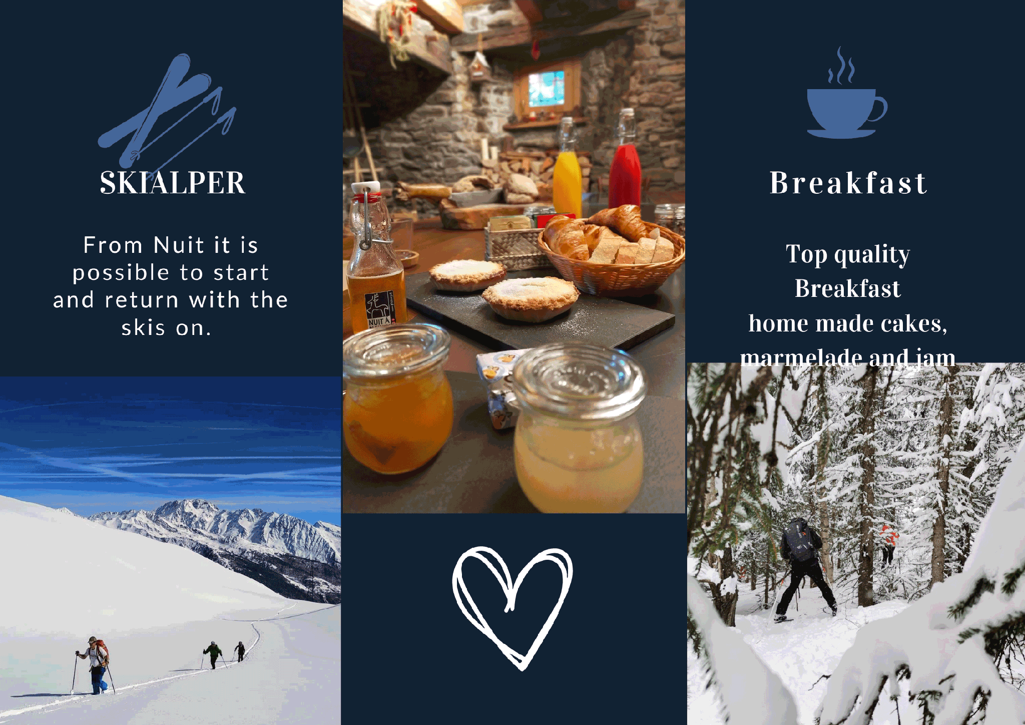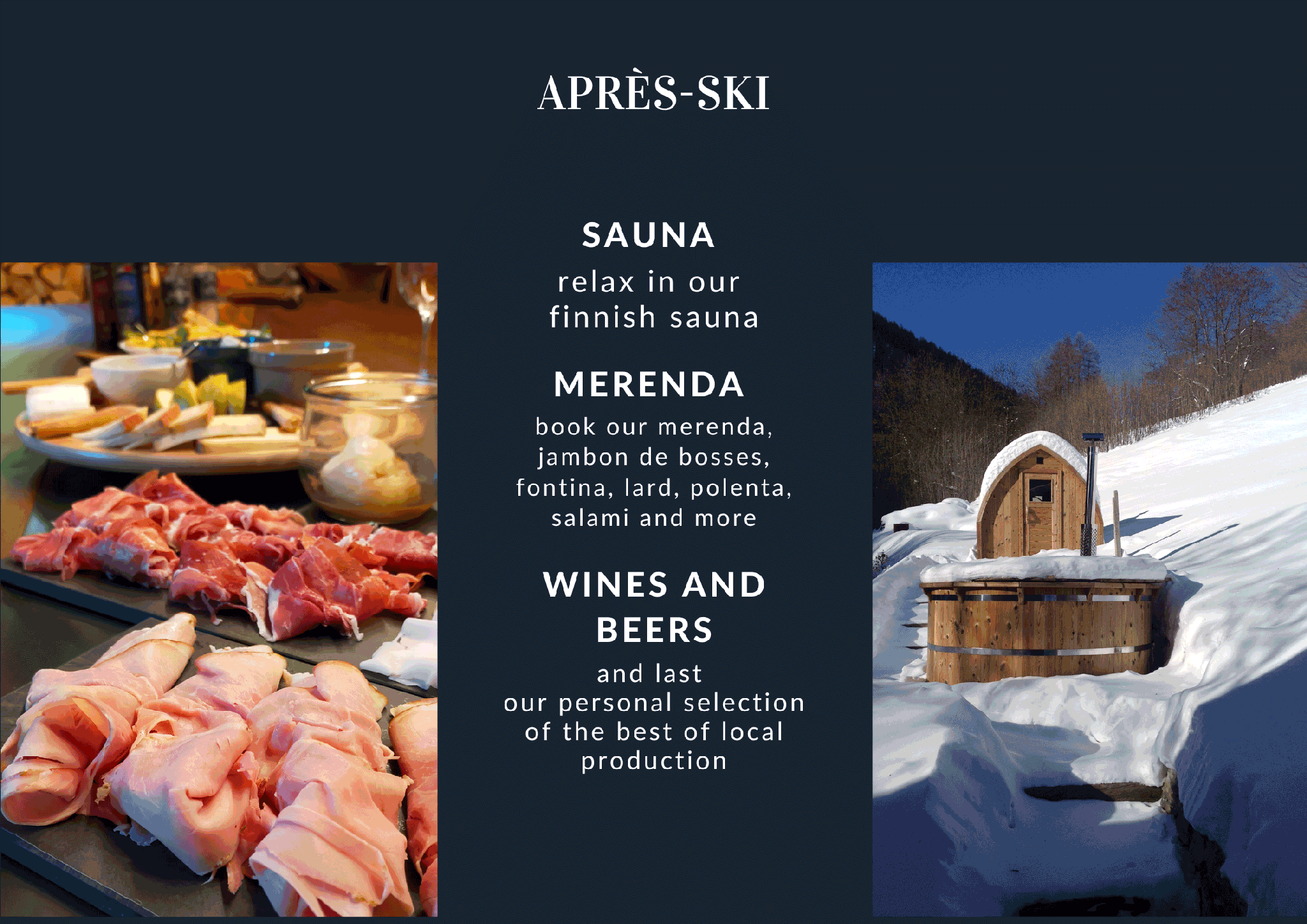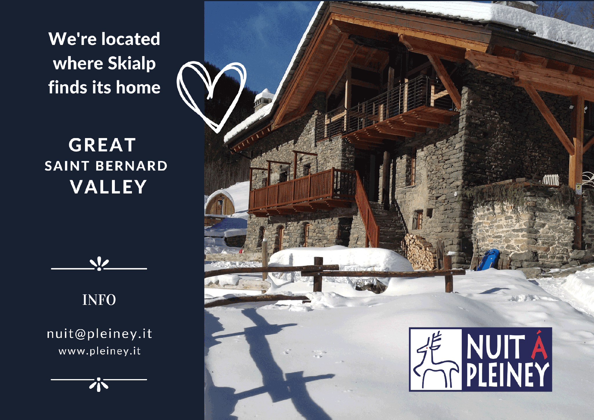 Nuit à Pleiney is an eco-friendly Chambre d’hôtes situated in a historical country house made of stones and woods in the first Italian town beyond the Swiss borders. Nestled amidst the tranquility of the High Mountains, this establishment sits at 1,500m above sea level and provides guests with close encounters to nature surrounded by larches and firs as well as brooks and wildflowers. /.../... winter activities .../... It is perfect for those who enjoy snowy pursuits being just 100 m far from the Flassin Cross Country Ski Trail and only 4km from the Crévacol Downhill Slopes making it suitable for skiing tours up mountain paths or exploring numerous routes that can be covered using snowshoes. /.../... summer activities .../... Mountain bikes and electric bicycles rental service including collection and return directly at our premises (with helmet provided along with maintenance kits); walking trips at altitude (High Way n°1 - Haute Route no. 2 – via francigena route alpina) plus trekking itineraries within moderate altitudes; there is even a nine hole Golf Course near us approximately twelve kilometres away! /.../... wellness & facilities (... some extra charges apply ...) .../... The vast open air space features a dining room outdoors under the stars where you will find tables carved out of solid rock together with sun loungers and parasols so you may relax while enjoying views over the surrounding landscape free from pesky insects since we sit comfortably perched one thousand five hundred metres above sea level. The Relaxation Chalet and Finish Sauna await your visit throughout the whole year whereas during warmer months these amenities come complete with Sensory Walkways and Nordic Hot Tubs. Enjoy breakfast served daily featuring regional produce such as home baked preserves and pastries accompanied by yoghurt and cereal topped off with fresh fruit juice whilst dinner options include tasting menus showcasing typical dishes specific to Vallée D'aoste upon prior arrangement. We have put together quite the wine list too comprising fine selections sourced exclusively from wineries found across Val d'Aoste region.