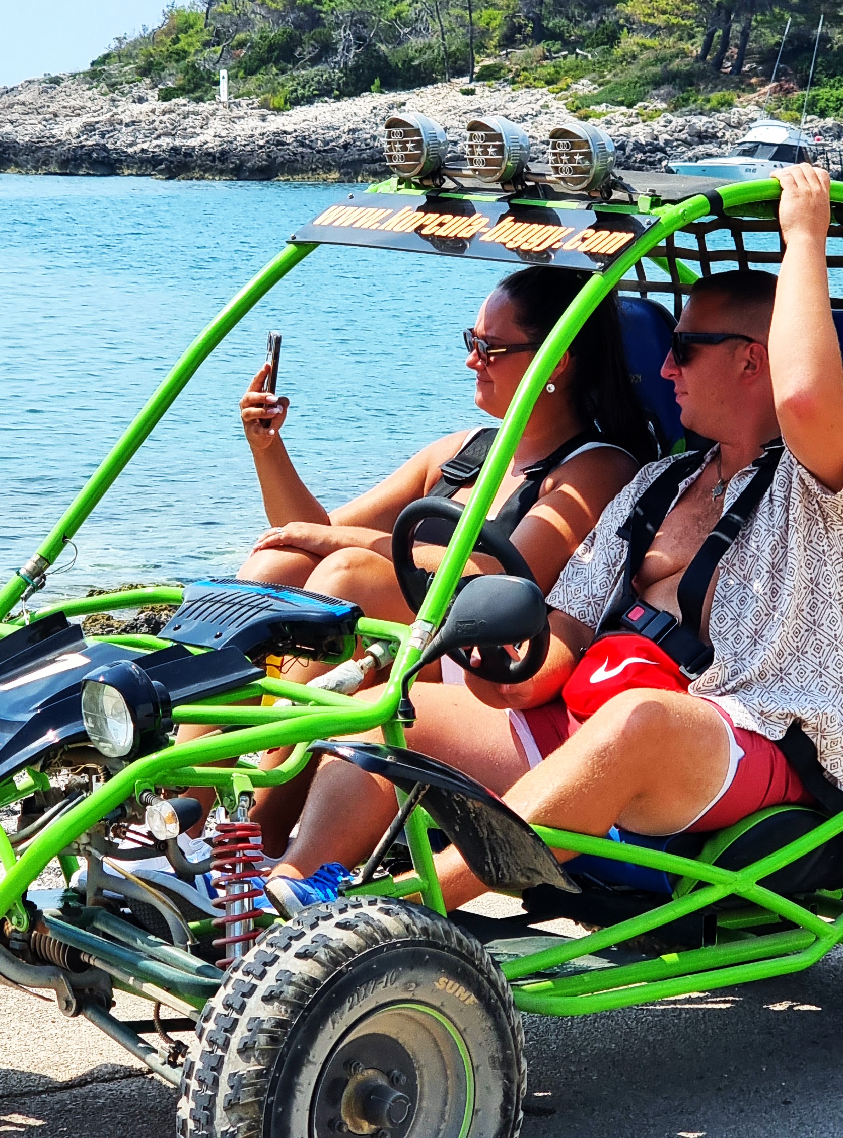 Welcome to KORCULA BUGGY OFFICIAL!!! An original experience on the Island of Korcula! It's a one-of-a-kind chance to explore the entire length of the island of Korcula within just four hours. Many websites rate our trip as being among the top excursions available here on the island. Of course, booking direct means avoiding having to pay commission fees ranging between 50 - 100%. Like everything else about us, even our little family company was founded back in 2012! We now count ourselves lucky enough to be able to say that we are proud parents to literally hundreds upon hundreds of happy customers who come to us every year from around the globe. Join up with us so that together we may share experiences which would otherwise remain hidden away out of reach; there really isn't anything quite like what we offer when compared to other tours or activities found elsewhere. After meeting your hosts, Branko and Ana, they shall guide you through memorable journeys along southern routes stretching anywhere from thirty six to forty two kilometres across these lands. With us, you stand to gain breathtaking views overlooking rolling green hillsides dotted with lush forests, glimpses of nearby Hvar Island, stunning vistas of the larger Peljesac Peninsula including her own collection of smaller satellite isles boasting pristine sandy shores bathed in crystal clear waters – plus sights of distant islets lying off the coast near Dubrovnik itself, right down to those further still towards the isle of Mljet and beyond past the rugged coastline leading ultimately to the remote reaches of Lastovo too. You’ll witness endless stretches of verdant fields planted thick with olives alongside various grapevines encircled by age old drystone walling structures characteristically marking Croatia's wine country landscape interspersed amongst them lie scattered pockets where grow vines bearing grapes used exclusively for producing wines known locally under their native name 'GRK'. Along the route, travelers might stumble upon remnants left behind after battles fought during WWII era conflicts. Swimming breaks taken amidst picturesque coastal scenery accompanied perhaps by sipping cool refreshing juices made fresh onsite ... And don't forget sampling delicious local treats prepared especially for visitors such as yourselves once the journey comes to a close inside our very home base located conveniently situated smack dab in the middle of town center area. For additional information please check out [www.korcula-buggy](http://www.korcula-buggy) website and follow us via any number of popular online networking sites/social media channels listed below. See you soon then folks! Warmest Regards!!